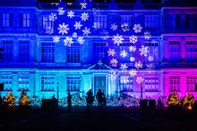 A display of lights transform the giant facade of Longleat House into a series of festive scenes as visitors wander among a forest of 100 decorated Christmas Trees.
