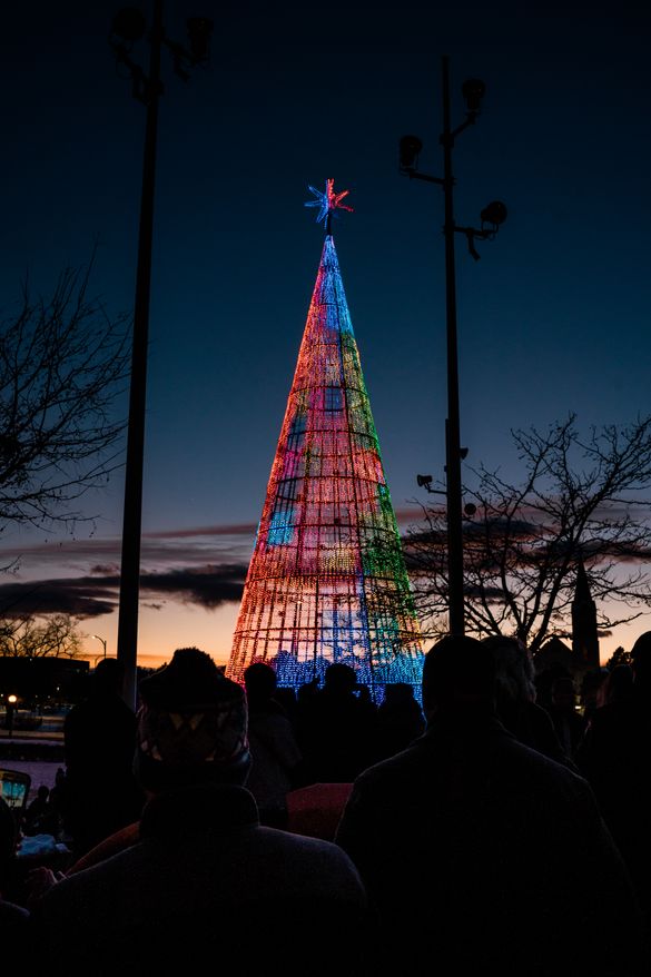 First of its kind 110-foot pixel LED tree illuminates city's newest holiday attraction