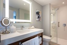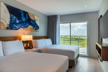 Embassy Suites by Hilton Aruba Resort features 330 two-room suites, with a contemporary design inspired by Aruba's iconic beaches and the Bubali Bird Sanctuary that uses a neutral and ocean blue color palette, wood accents and sea life art to create a calming, warm and inviting environment that feels like home. Rooms sleep up to six guests and are available as two queens or one king bed, with the living area offering extra seating and a sleeper sofa. Dining areas offer a wet bar outfitted with a microwave, mini-fridge and coffee maker to create the perfect homebase to socialize with family and friends. Most rooms offer balconies, designed to enjoy the expansive views of the ocean, nature or pool from coffee at sunrise to a cocktail at sunset.