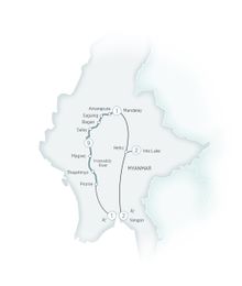 In Mandalay, considered the cultural hub of upper Myanmar, a walking tour highlights the many monasteries that populate the area. Guests who rise early get to witness the Buddhist monks in the area collecting daily alms before sunrise. In Mingun, a visit to the all-white Hsinbyume Pagoda and Mingun Bell—the world's largest, un-cracked ringing bell—reveal much about the religion and history of the area. A ride aboard a horse-cart in Ava uncovers more religious sites, including the teak Bagaya monastery and Nanmyin watchtower, while an excursion to Monywa exposes guests to one of the most intricately decorated temples in the country, with more than 500,000 images of Buddha. In Yandabo, a school trip allows for interacting with local children and learning about daily life in this small village. Stops in Salay, Magawe, Thayetmyo and Prome reveal more of Myanmar's heritage and natural beauty before arriving back in Yangon for disembarkation.