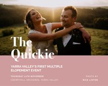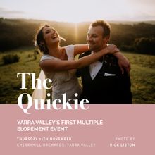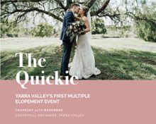 Off Peak Weddings, part of Yarra Ranges Tourism, is inviting you to have a Quickie in the Yarra Valley on Thursday November 11. Can you count the times you've changed your wedding plans - or have you even stopped dreaming that you could manage a wedding at all? The Off Peak Weddings Quickie is a fun, gorgeous and apt alternative for your destination wedding. All the bells & whistles on a slightly smaller scale and in the end - love wins - again.