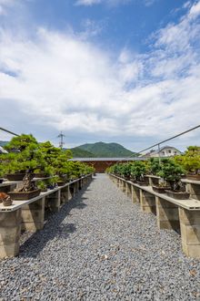 The Kinashi and Kokubunji areas of Takamatsu City in Kagawa Prefecture, have been in production for about 200 years, and are now the largest pine Bonsai production area in Japan with 80% of the national market share. Centred at the foot of Goshikidai Plateau about 60 growers are engaged in cultivating black pines, five-leaf pines, brocade pines and a few others. The scenery of the fields of pine trees planted in the ground before they are potted up is especially unique to the production area.