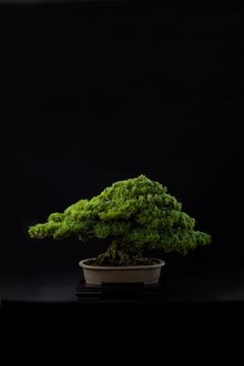 Bonsai is the planting and cultivation of natural trees in pots, and their care and appreciation in pursuit of beauty beyond their natural state. It is a traditional Japanese art form, and at its core, Bonsai expresses the tenderness of the Japanese heart and a fine aesthetic sense towards every living thing. The traditional concept of Bonsai is to create a plant that is portable and can be placed on a tabletop, however, it takes many generations of skilled artisans decades, often hundreds of years, to carefully cultivate it into a beautiful, well-balanced form.