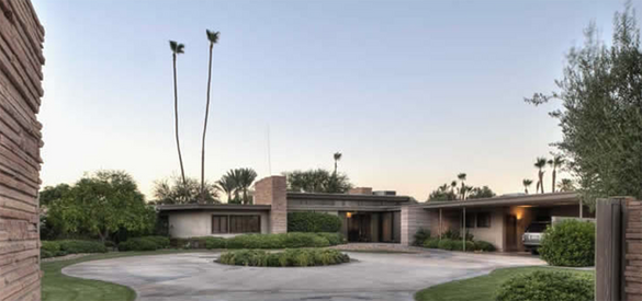 1. Twin Palms Estate - (1148 East Alejo Road, Palm Springs) – Sinatra had this midcentury modern jewel built in 1947 by award-winning architect Stewart Williams. The property boasts four bedrooms, seven bathrooms, a state-of-the-art (by 1947 standards) sound system, movie projectors and sound recording equipment for guests' enjoyment. Huge sliding glass doors open onto an expansive backyard patio leading to a cabana, the two signature “twin palm” trees and a piano-shaped swimming pool. Visitors revel in the property's Sinatra history – right down to the crack in the bathroom sink caused by a wayward champagne bottle, said to be tossed at Ol' Blue Eyes by an incensed Ava Gardner. While the property is not open to public tours, it may be rented for private parties or personal stays.