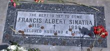 10. Desert Memorial Park (69-920 Ramon Road, Cathedral City) – The final resting place of Ol' Blue Eyes. Sinatra's body was buried at the Park in a family plot next to his parents. His grave is located near the entrance in front of the waterfall. Frank's closest friend Jilly Rizzo, his uncle Vincent Mazzola and composer Jimmy Van Heusen are buried close by. Hundreds of Sinatra fans make the vigil to Sinatra's burial spot each year to pay their respects. His simple headstone, which reads, “The Best Is Yet to Come,” is almost always adorned with fresh cigarettes, dimes (a favorite giveaway of Sinatra's, as a reminder of tougher times) and, often, mini bottles of Jack Daniels.