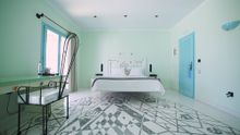 The fourteen suites at Agalia Luxury Suites are individually decorated in a palette of blues and greens to reflect the turquoise sea and rolling hills that wrap around this island retreat. Inside whitewashed walls and arches accentuated by local marble and stones hint at traditional Cycladic style while original artwork adds a contemporary edge. The art doesn't stop at the walls, however, as each suite also features a one-of-a-kind floor over which the beds appear to be suspended. Those who don't have the luxury of one of the three private pool suites can relax by the fresh water pool, surrounded by palm trees and overlooking the sea, port and the town. As the day comes to a close, guests can salute the sun with regular yoga and meditation sessions in the grounds. Pool Suites are available from €198 per night.